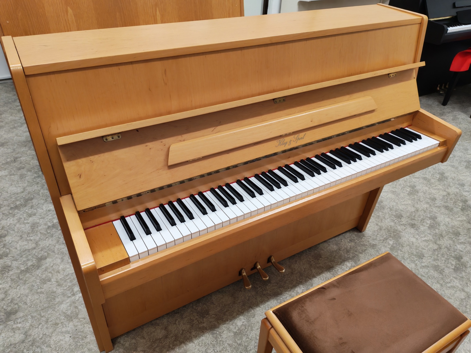 piano-forte » Pianina » KLUG & SPERL 2 - k prodeji, české pianino světlý mat, výška 110 cm, rok výroby 1999, 3 pedály, příjemný zvuk, cena 46 000,- Kč.