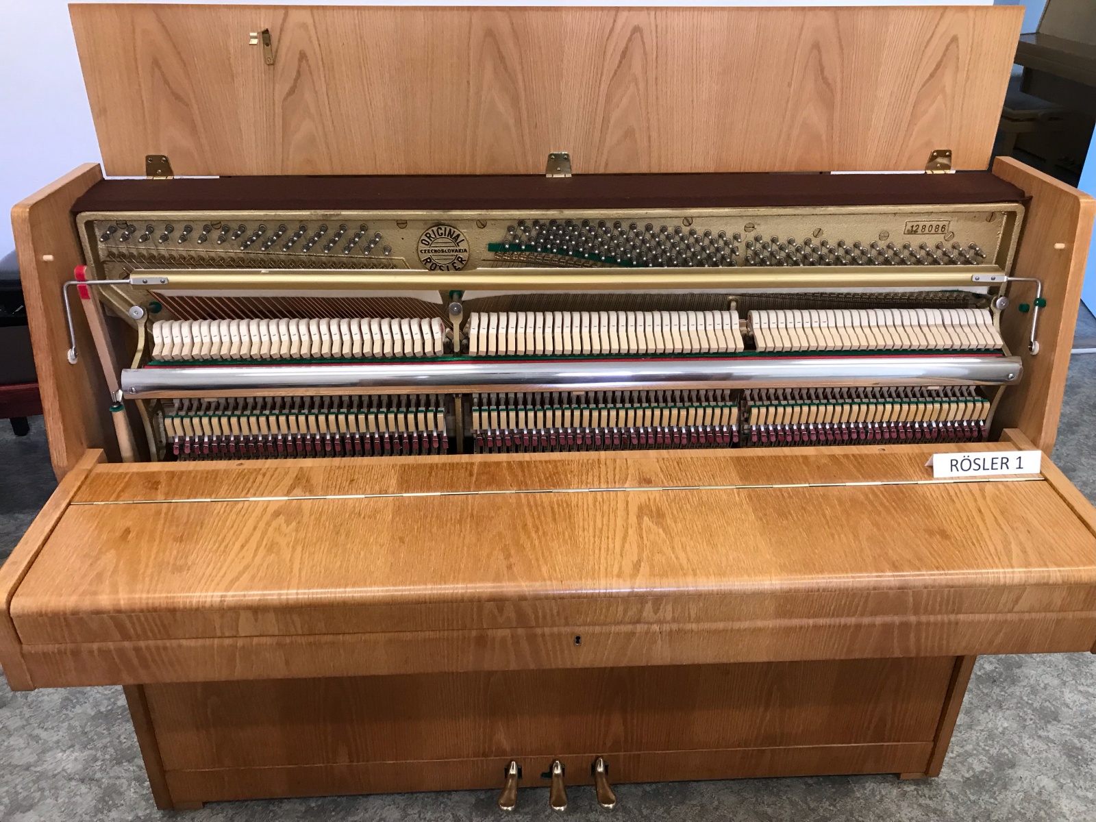 piano-forte»Pianina»RÖSLER 1 - světlý mat, zvukově i vzhledově vynikající nástroj, výška 115 cm, 3 pedály, zánovní stav, minimálně hrané pianino, cena 49000,- Kč.
