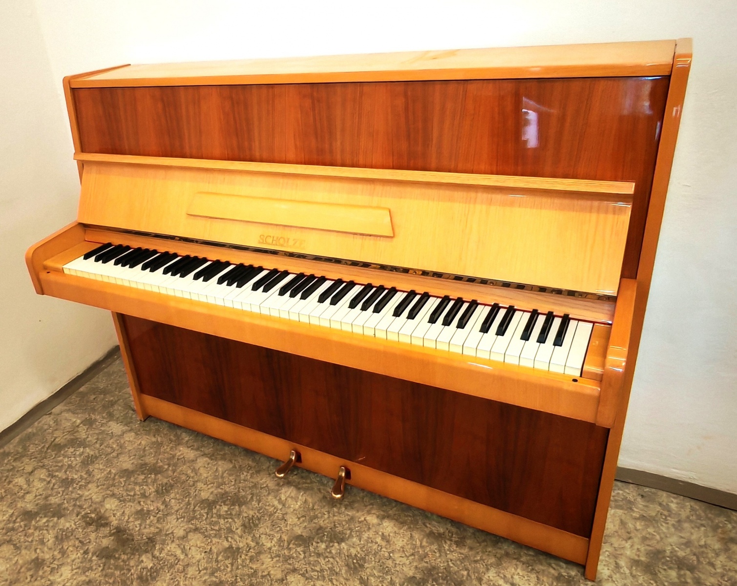 piano-forte » Pianina » SCHOLZE 1 - k prodeji, kombinace lesk, 2 pedály, výška 115 cm, zvukově i vzhledově kvalitní, cena 39000,- Kč.