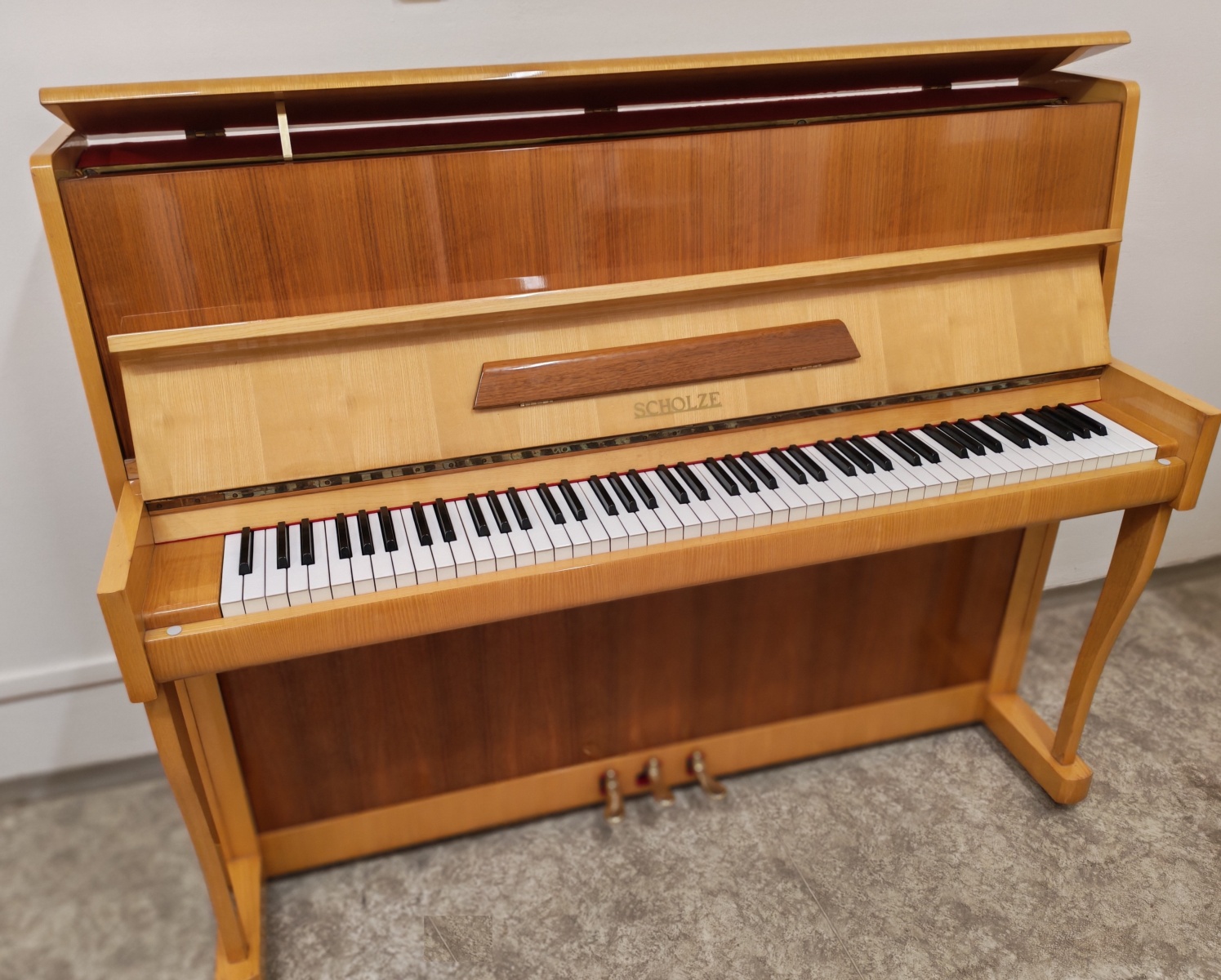 piano-forte » Pianina » SCHOLZE 2 - k prodeji, kombinace lesk, 3 pedály, výška 115 cm, pěkný vzhled, zvukově výborný nástroj, cena 39000,- Kč.