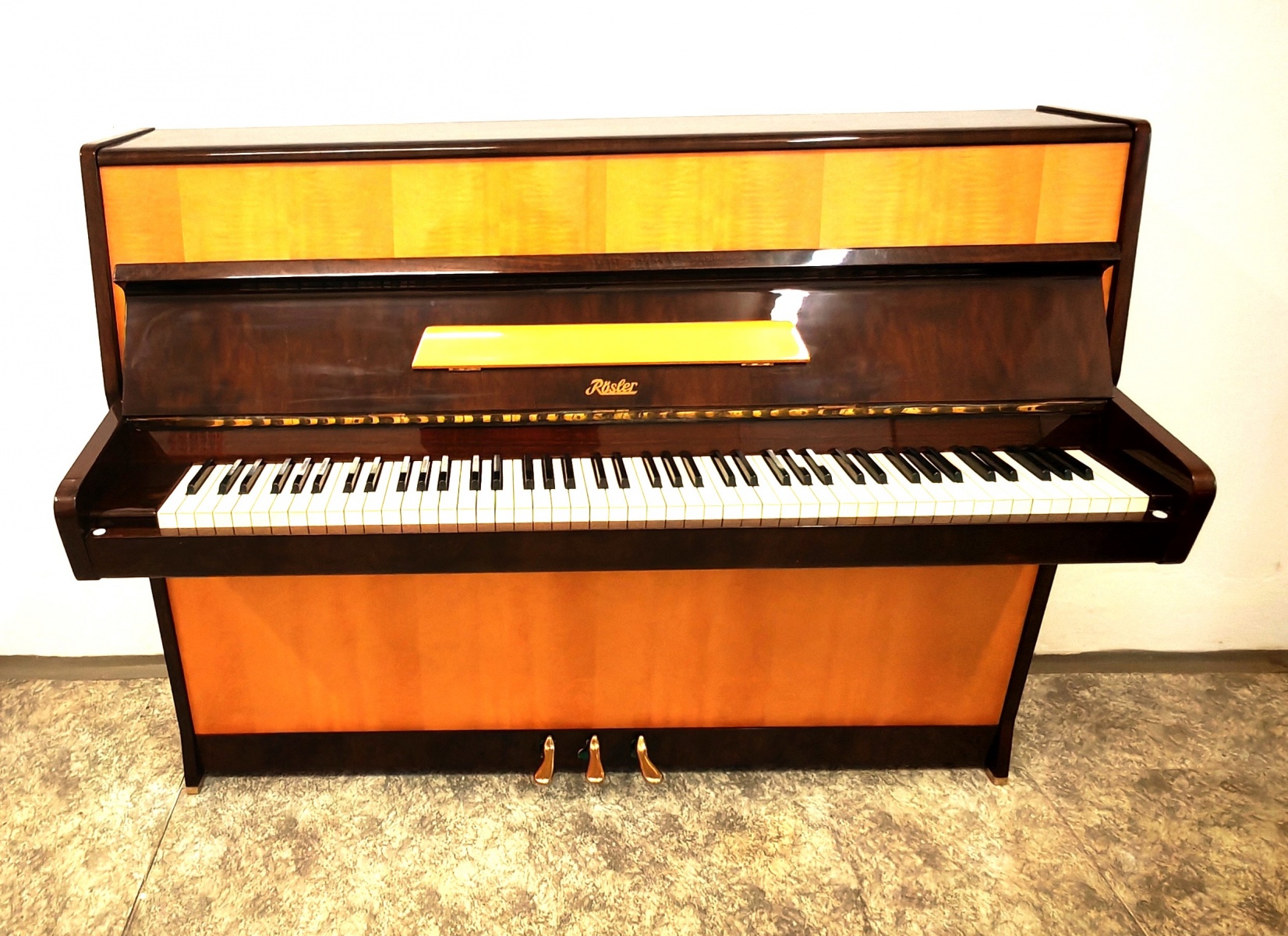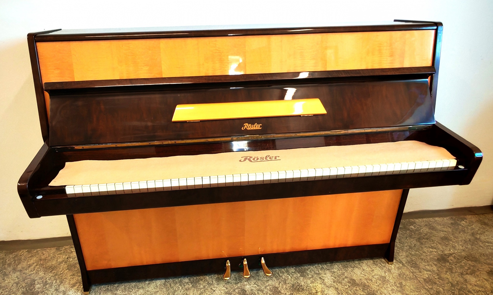 piano-forte » Pianina » RÖSLER 2 - k prodeji i k pronájmu, kombinace lesk, 3 pedály, výška 110 cm, zvukově i vzhledově výborné, cena 30000,- Kč.,